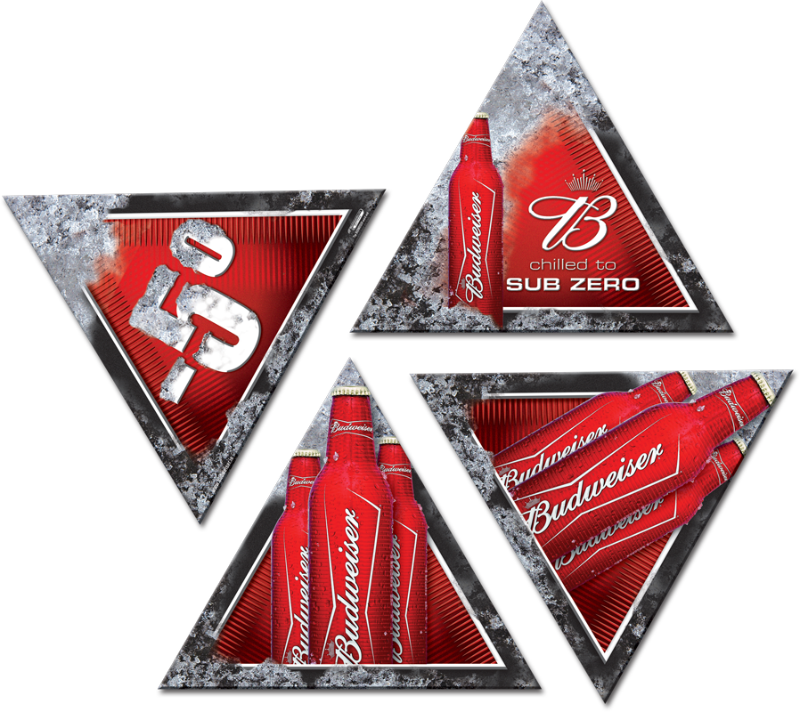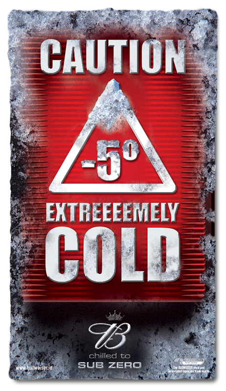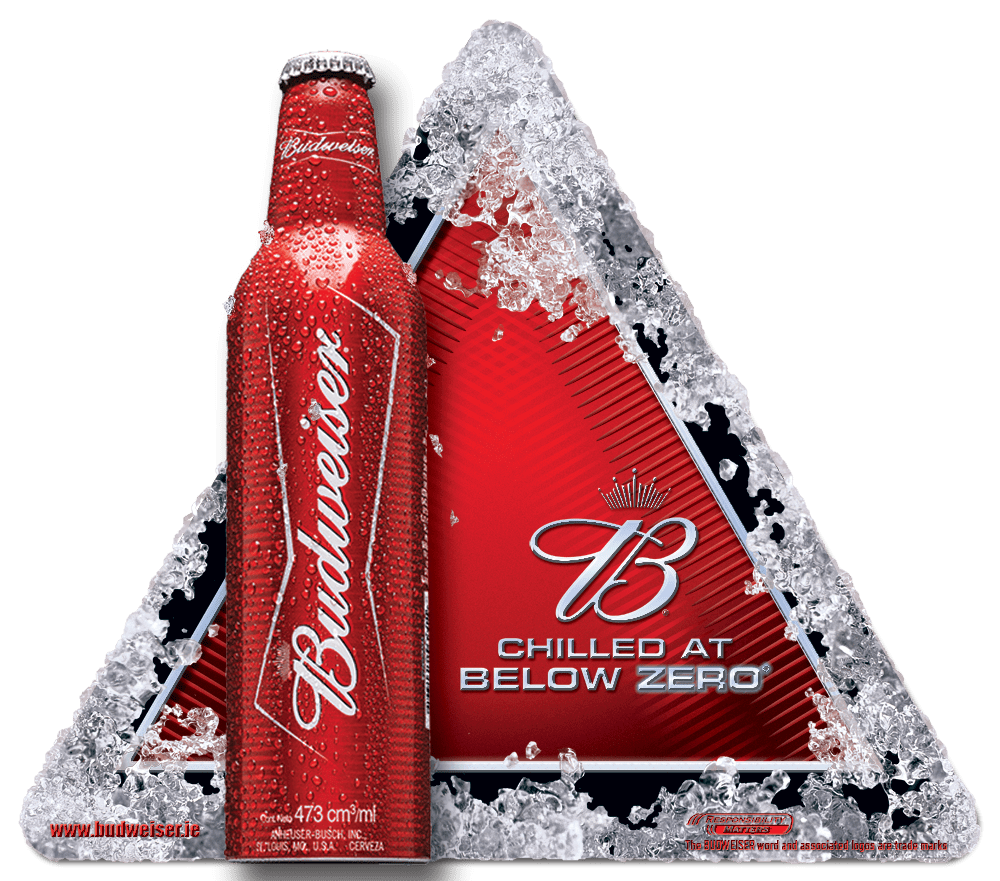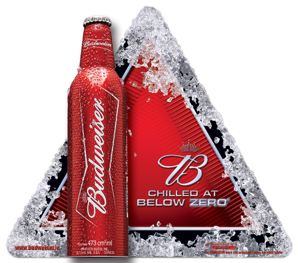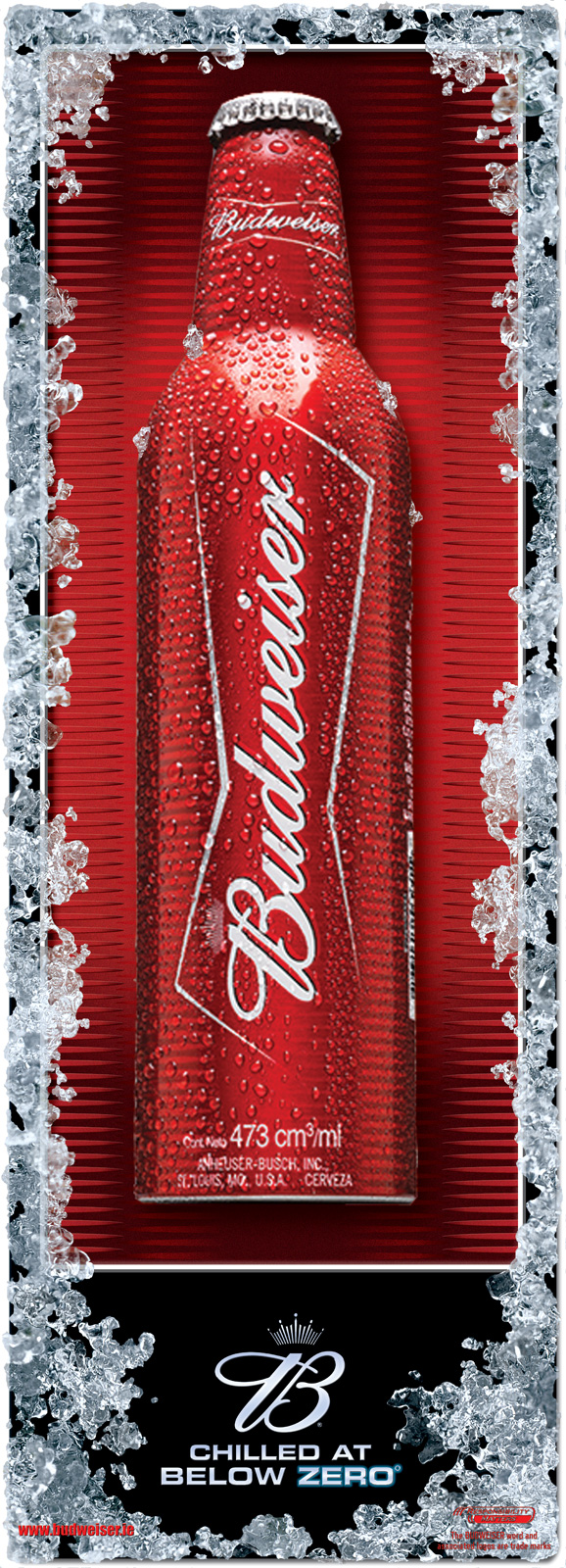 Gone but not forgotten. Budweiser’s iconic aluminium bottles were available on-trade for about a year in Ireland. At the time of its launch, we did a lot of work on a planned launch event, but the work didn’t get produced, due to a shift in the client’s marketing plan. Here are some of the proposed POS items from that suite.
