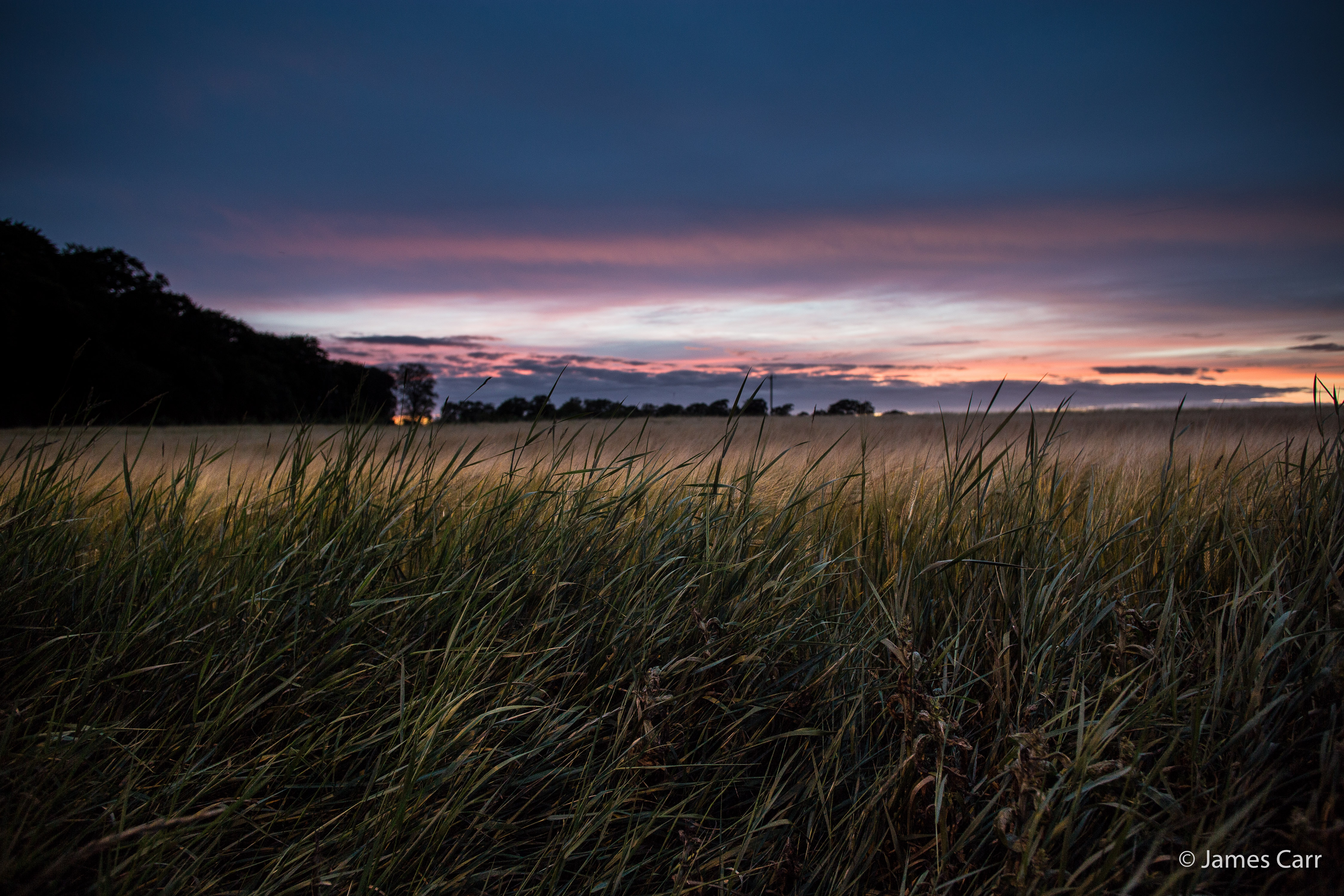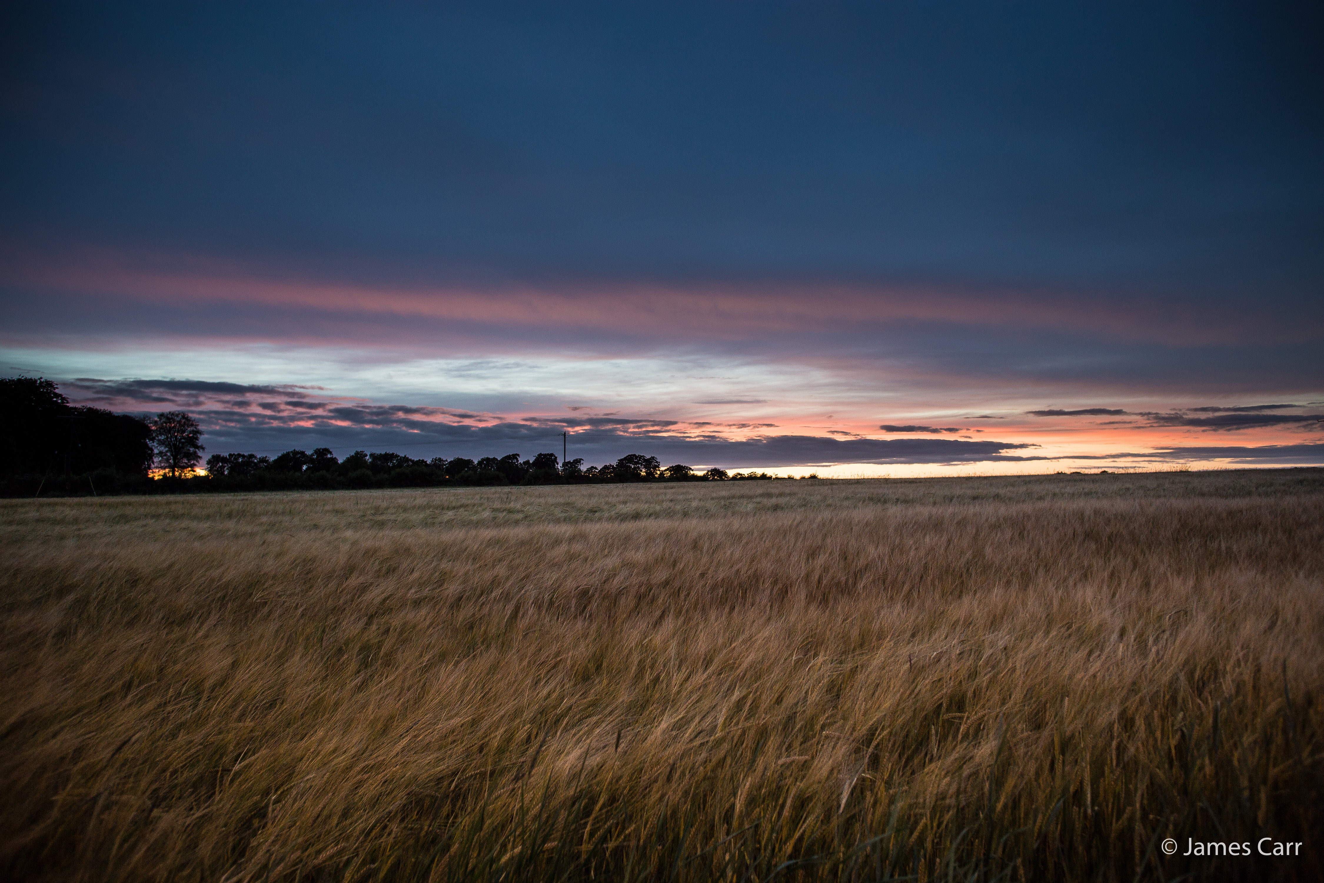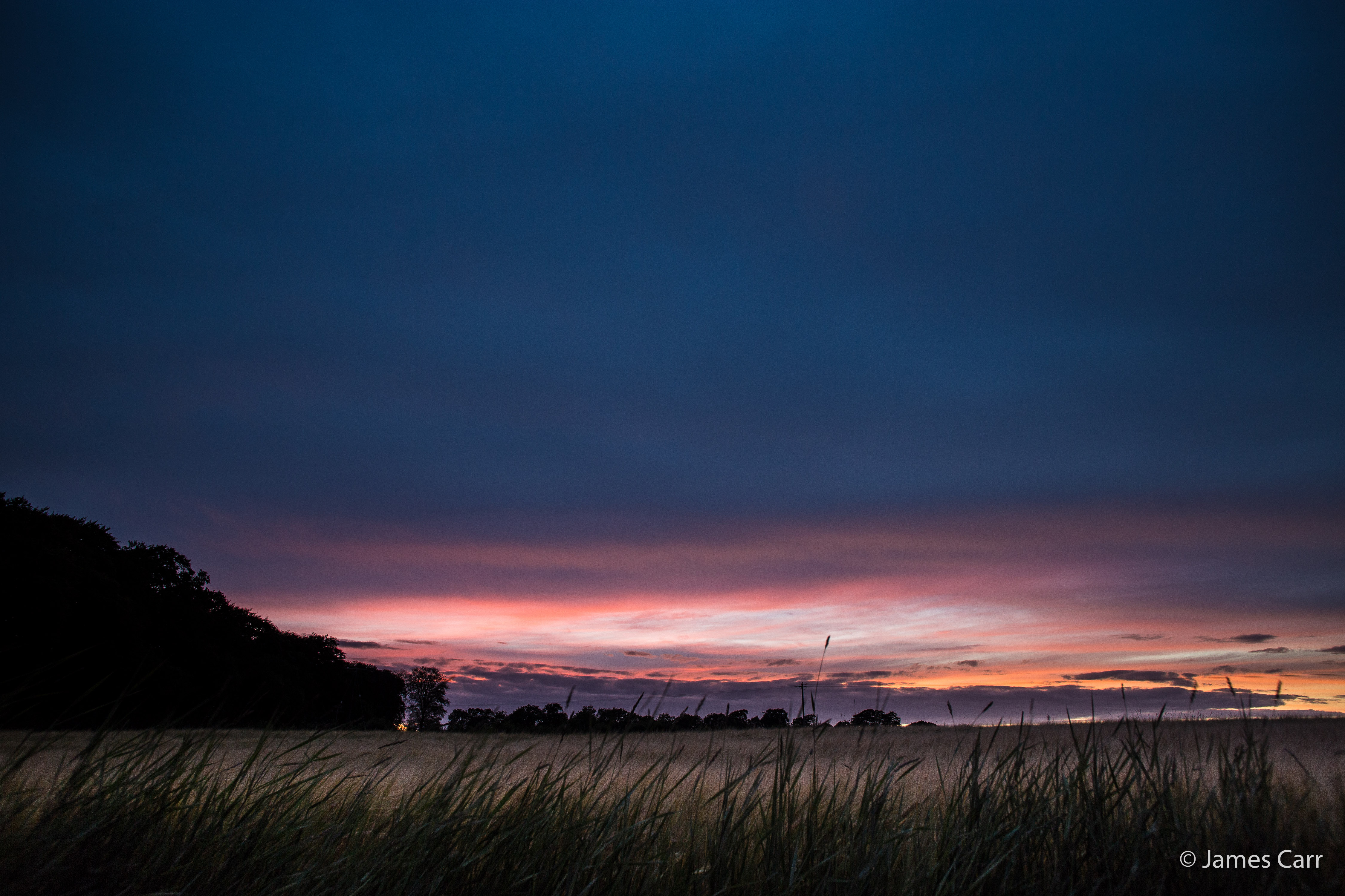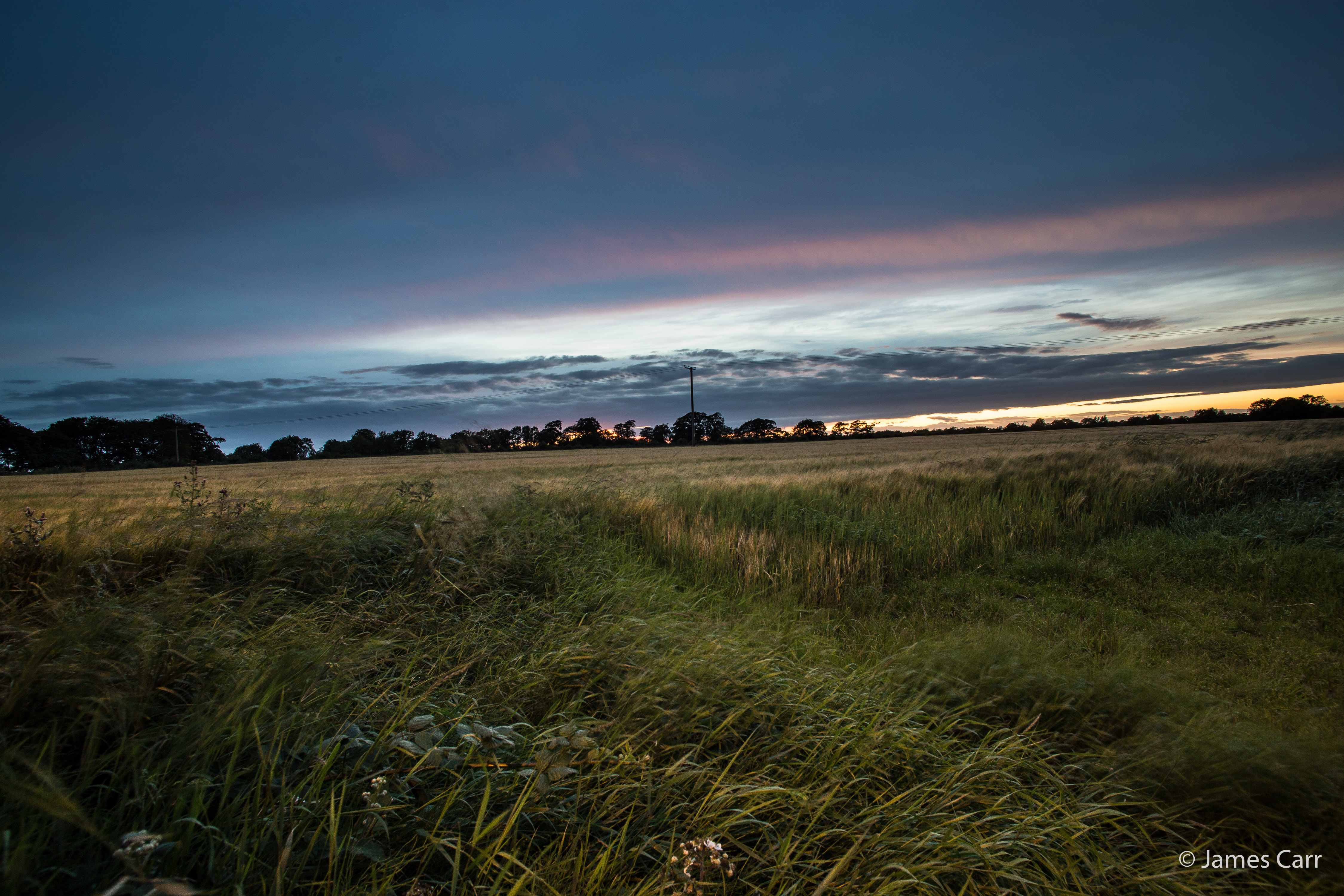 Last tuesday evening, I was sitting in the kitchen at about 9.15pm when I noticed that the garden was pink. Moving closer to the window, I could see the incredible sky that was casting the warm tones. I thought to myself what a shame it was I hadn’t gone out with my camera earlier. Then I thought – feck it – I’ll grab it now and run out to the road and take a couple of snaps anyhow. The sun was going down quickly. I hopped over the garden wall and out to the roundabout on the other side, took a couple of shots there and then headed up the road as quickly as I could walk, aiming to catch the sunset over the fields. I didn’t get there in time, but I got some half-decent shots anyhow, using my iPhone (with the EOS app) as a remote and some fence posts as a tripod.