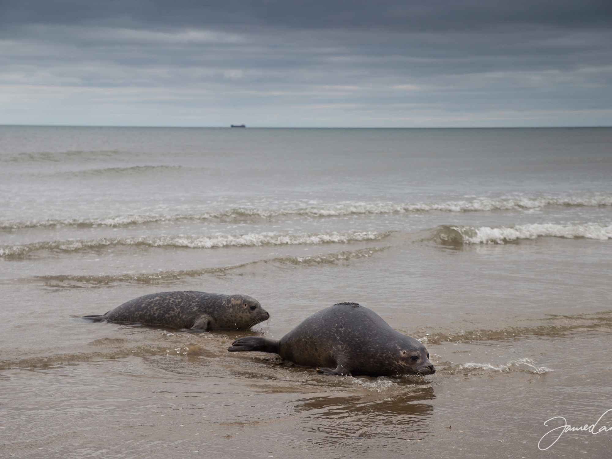 Heading down the beach this morning, I saw a group of people in the distance by the edge of the sea. There were a couple of smaller groups making their way slowly across the sand towards them and I noticed they were carrying something. Turns out they were a group from the Seal Rescue Centre in Courtown, plus supporters, gathered to release four rescued and rehabilitated seal pups. The smaller groups were carrying the pups in dog cages. It was a real treat to see the seals and watch as they were sent on their way. For the people from Seal Rescue Ireland, it was an emotional day, saying goodbye to Medusa, Moonstone, Blackbird and Hawkeye after nursing them back to health over the last few months. What a fantastic surprise – seeing these beautiful creatures. I hadn’t heard of the rescue centre before, but I’ll definitely pay them a visit next time I’m down in Wexford.
