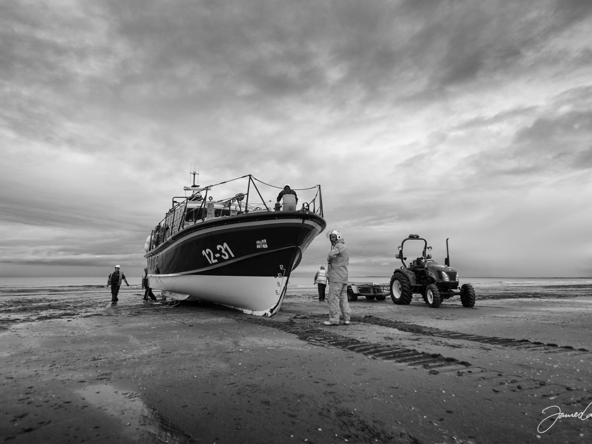 I was out for a stroll with the dogs last night when I happened upon the Clogherhead RNLI crew coming back from what looked to be a training exercise. It was fascinating to watch the elaborate, time-consuming and precisely timed process of getting the boat out of the water. It was a real treat, and it made for some nice photos too. I can only imagine how lucky you’d feel, on a stormy winter’s night at sea, to find these guys coming in for a rescue. A couple of years ago, I went in to the station at Clogherhead during an open day and had a tour of the boat. It’s an amazing bit of kit – essentially a submarine that can be sealed tight to weather the roughest of seas. The skill, bravery and dedication of the volunteer crew is absolutely awe-inspiring.