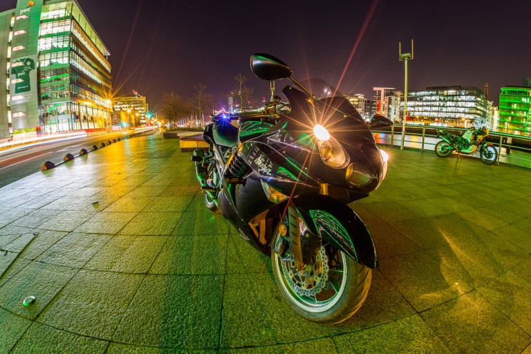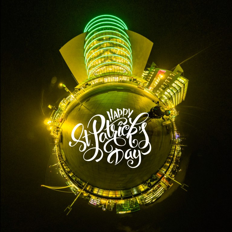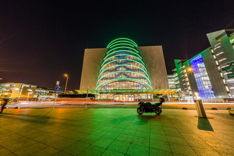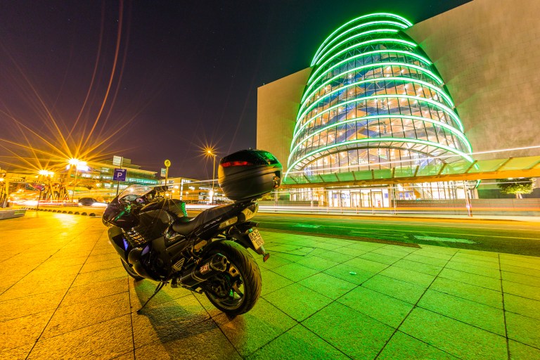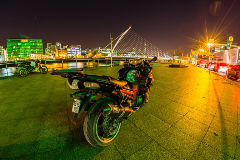 Paddy’s Day eve. I stopped off at the Convention centre to capture a bit of green white and orange. I thought my bike was looking pretty fetching too, so I took a few snaps of that while I was there.